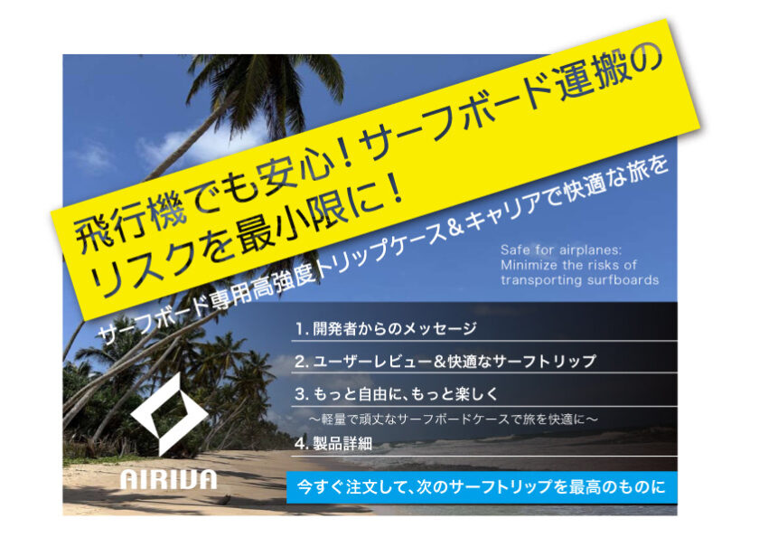 - 「飛行機輸送中の破損も、これなら安心。遠征が快適になりました!」(サーフショップマネージャー)